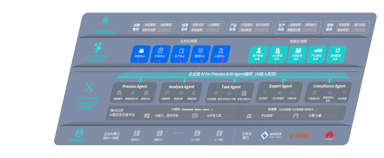 端到端的一站式AI工作空间深度融合了从企业战略规划到日常经营的全流程业务板块,,,,定向解决车企内部领域多、、、部门多、、、、链条长、、场景碎片化等难题,,支持车企快速构建以AI为核心的生产力写作体系,,实现任务执行与AI能力的无缝集成与交互
